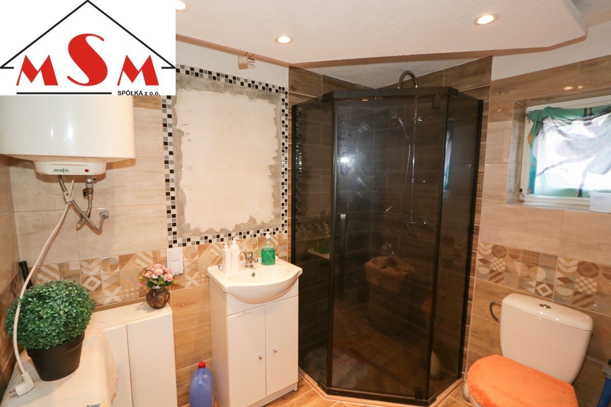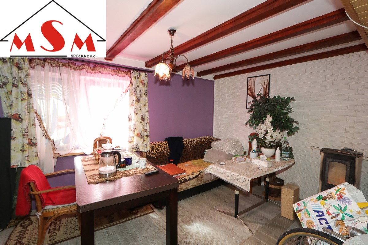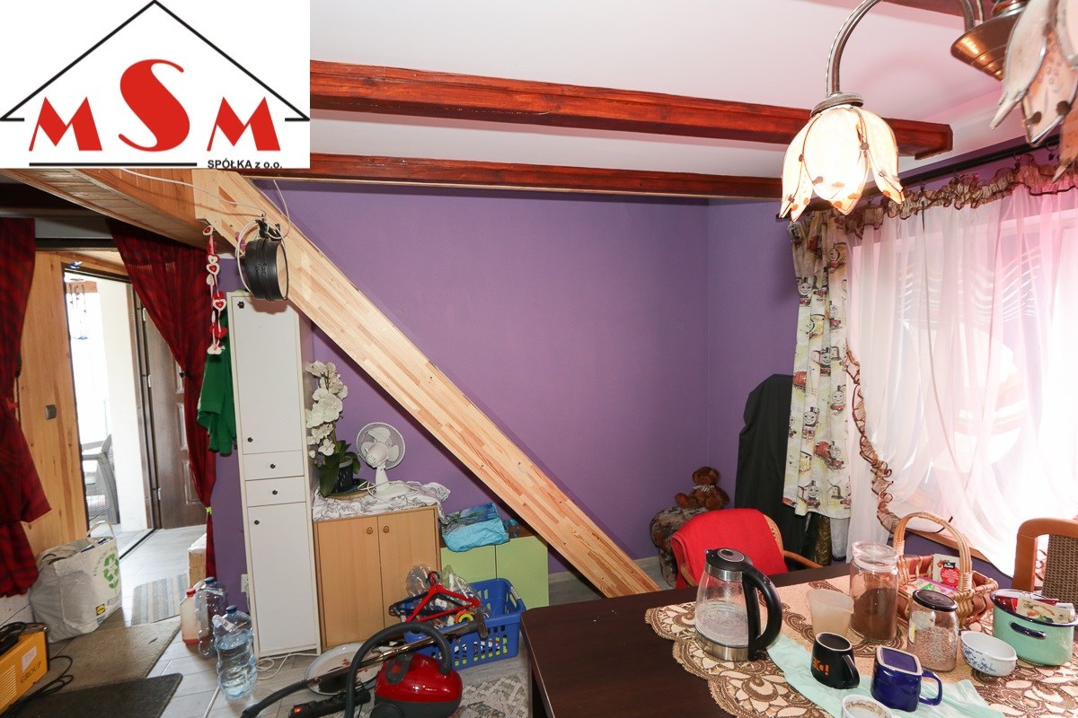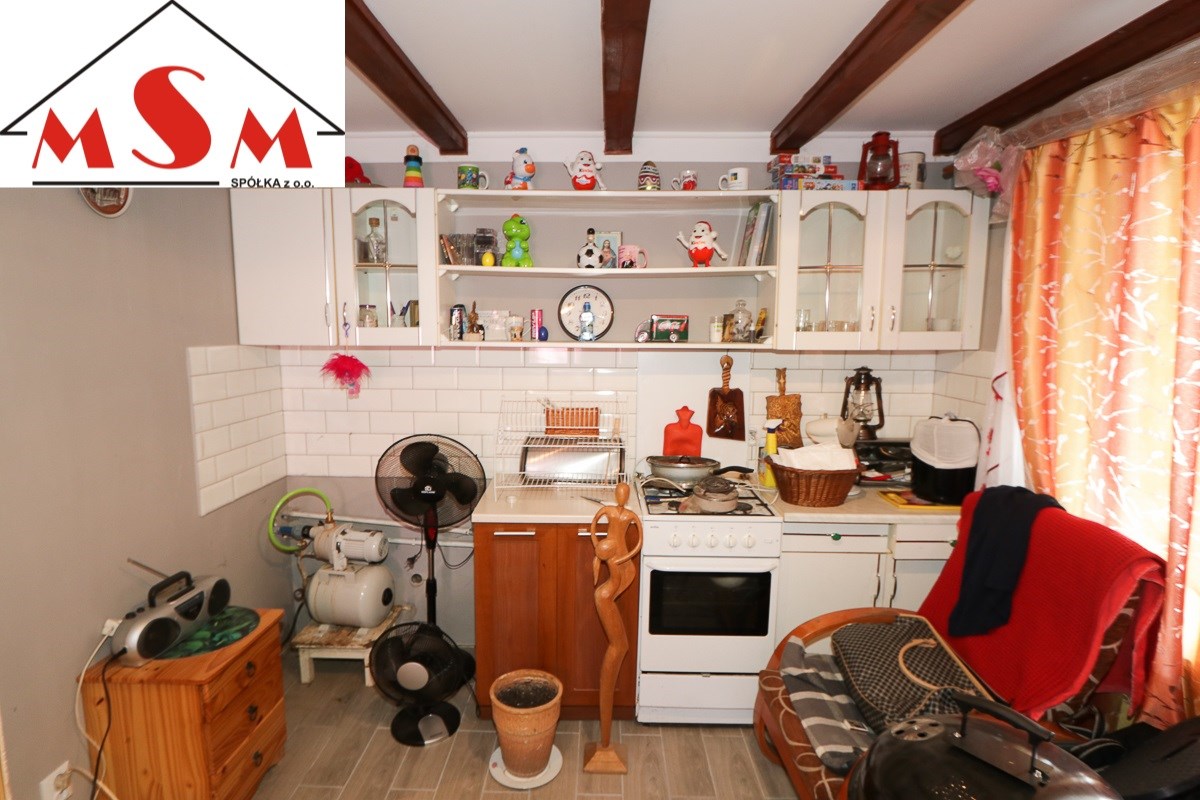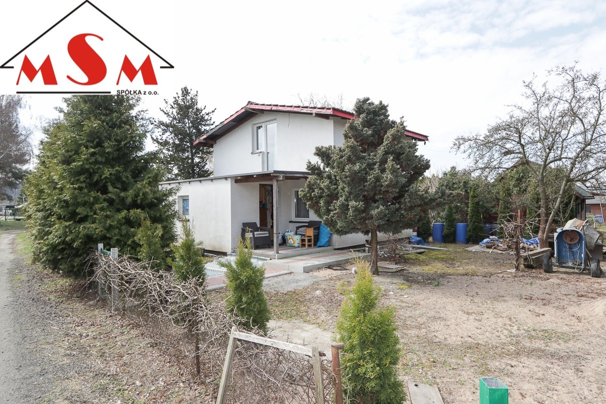 Działka zabudowana domkiem murowanym o pow. 70 m kwadratowych. Na parterze znajduje się salon z piecem do ogrzewania typu koza, wyposażona kuchnia oraz łazienka z prysznicem i toaletą.
