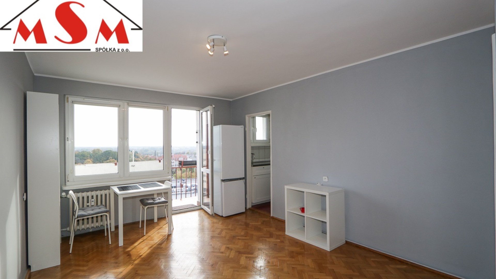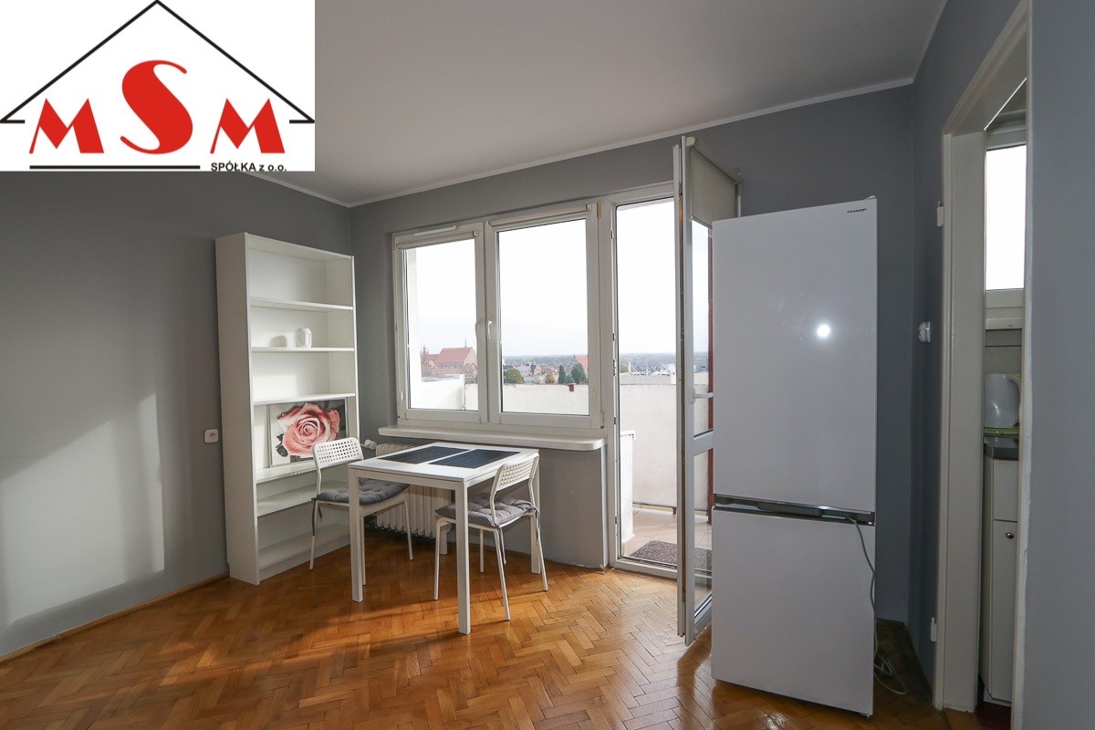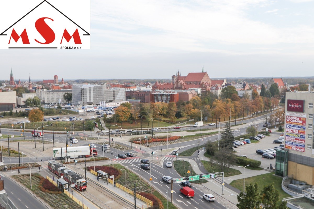 Polecam zakup kawalerki z dużym balkonem i pięknym widokiem na panoramę Starego Miasta.