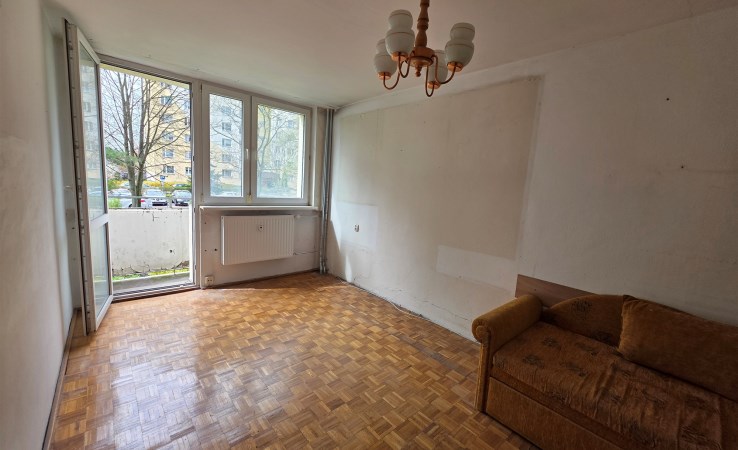 Mieszkanie znajduje się na trzecim piętrze w wieżowcu na osiedlu Młodych. Z okien rozpościera się piękny widok na zieleń.