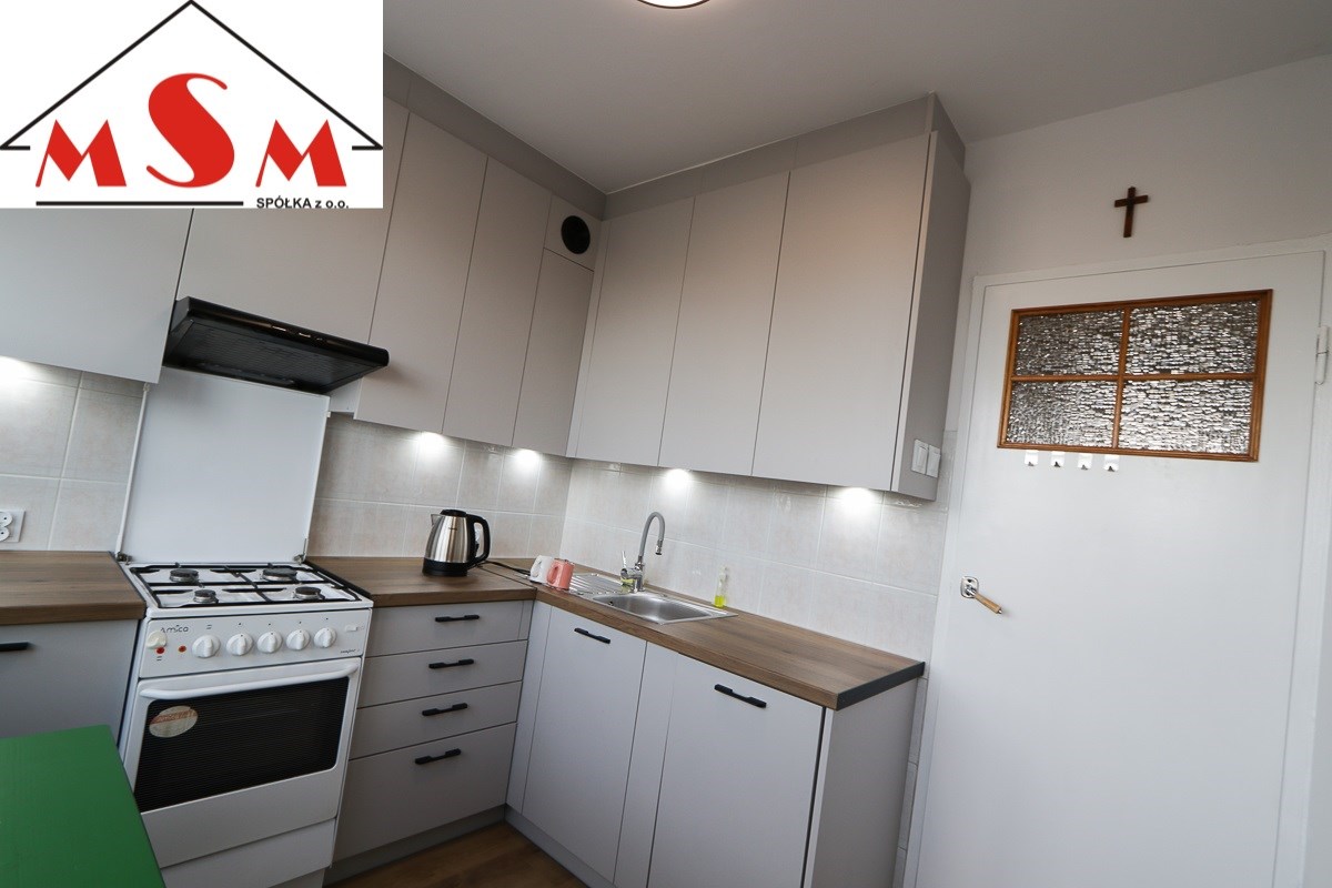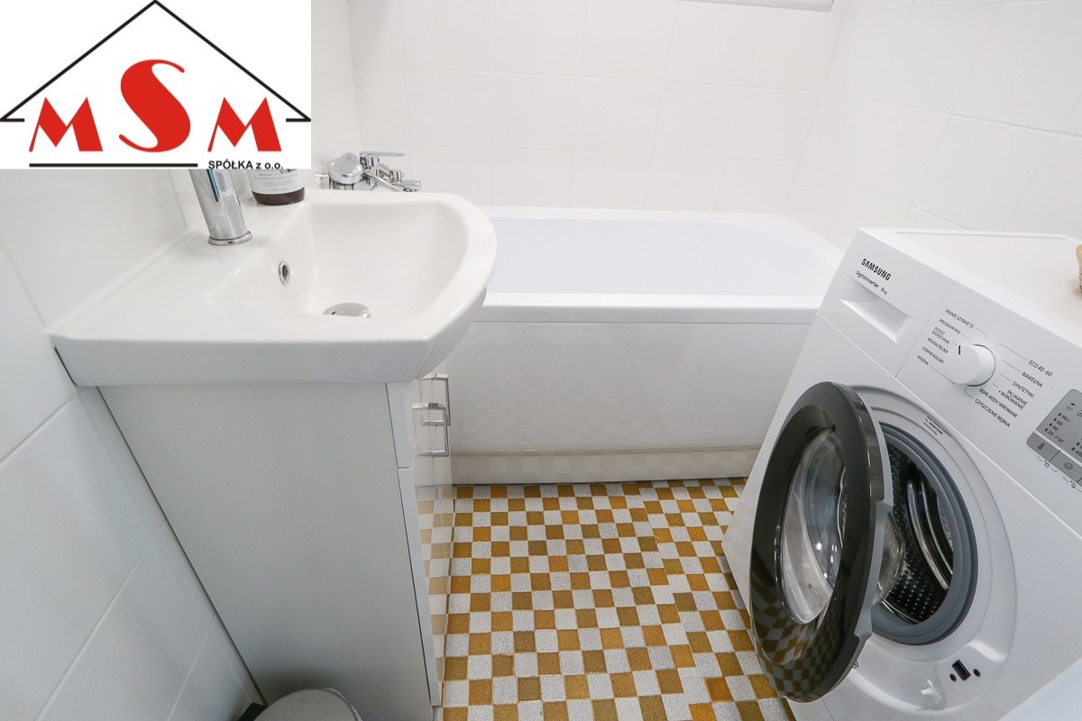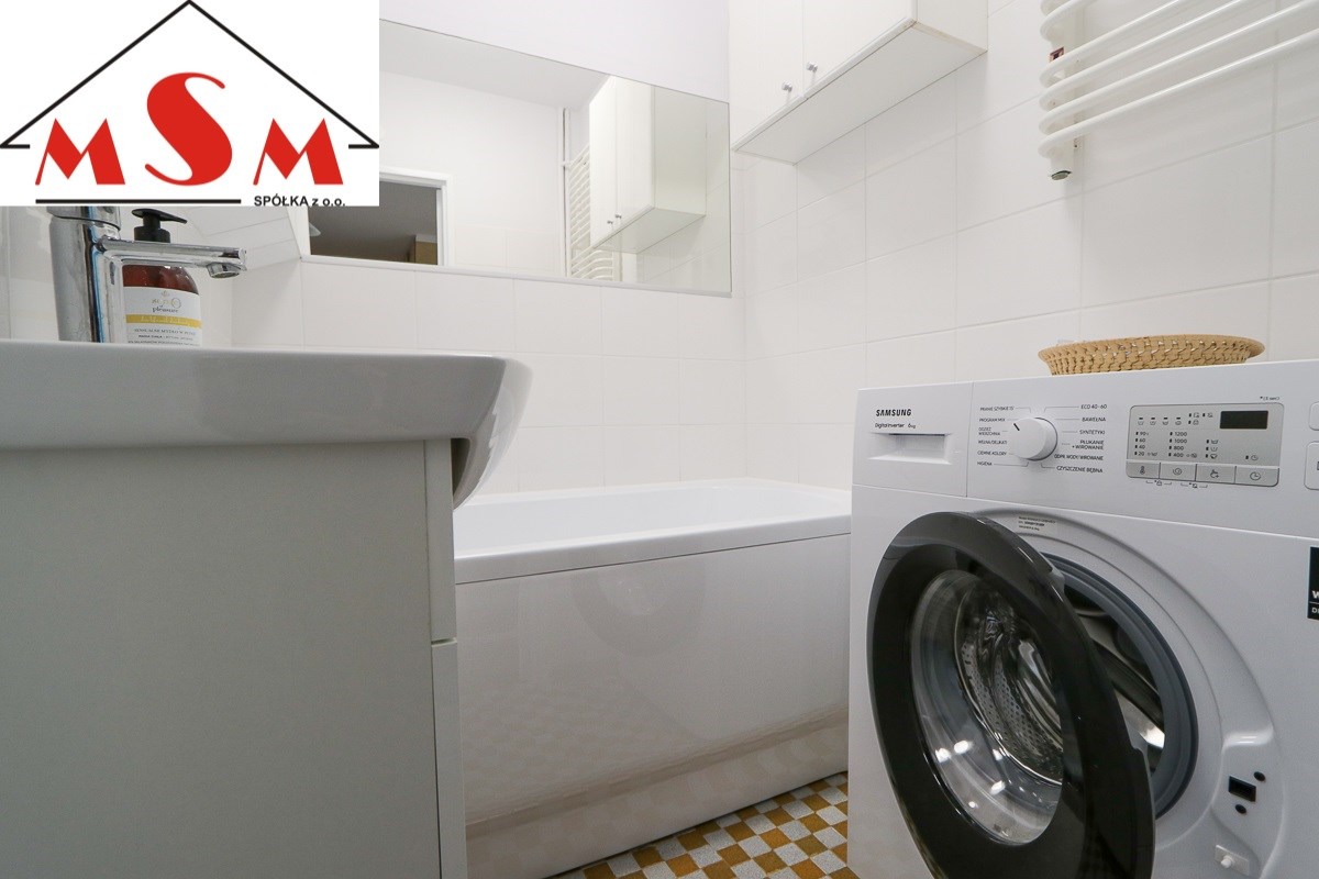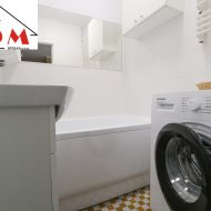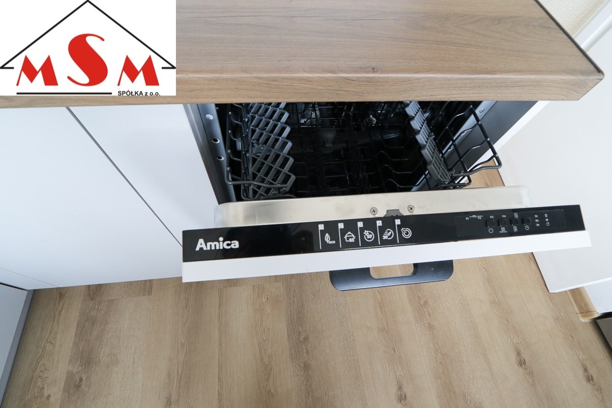 Mieszkanie w pełni meblowane z nową kuchnią ze sprzętem AGD typu zmywarka, lodówka, kuchenka, piekarnik, okap i pralka w łazience.